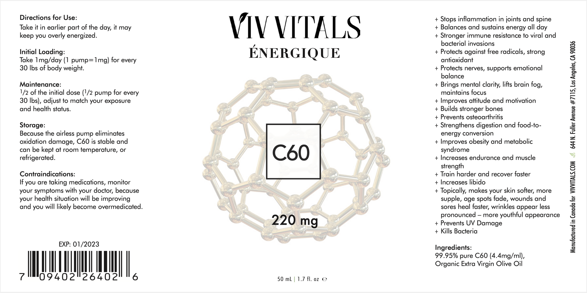 99.95% pure C60 (4.4mg/ml), Organic Extra Virgin Olive Oil