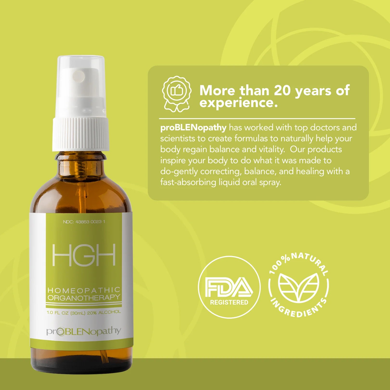 Although homeopathic sprays are of homeopathic potencies, these sprays contain enough human growth hormone. Problen homeopathy products have been asigned its own National Drug Code number by the FDA, which indicates that FDA regulates our products as hoemopathic medicines.