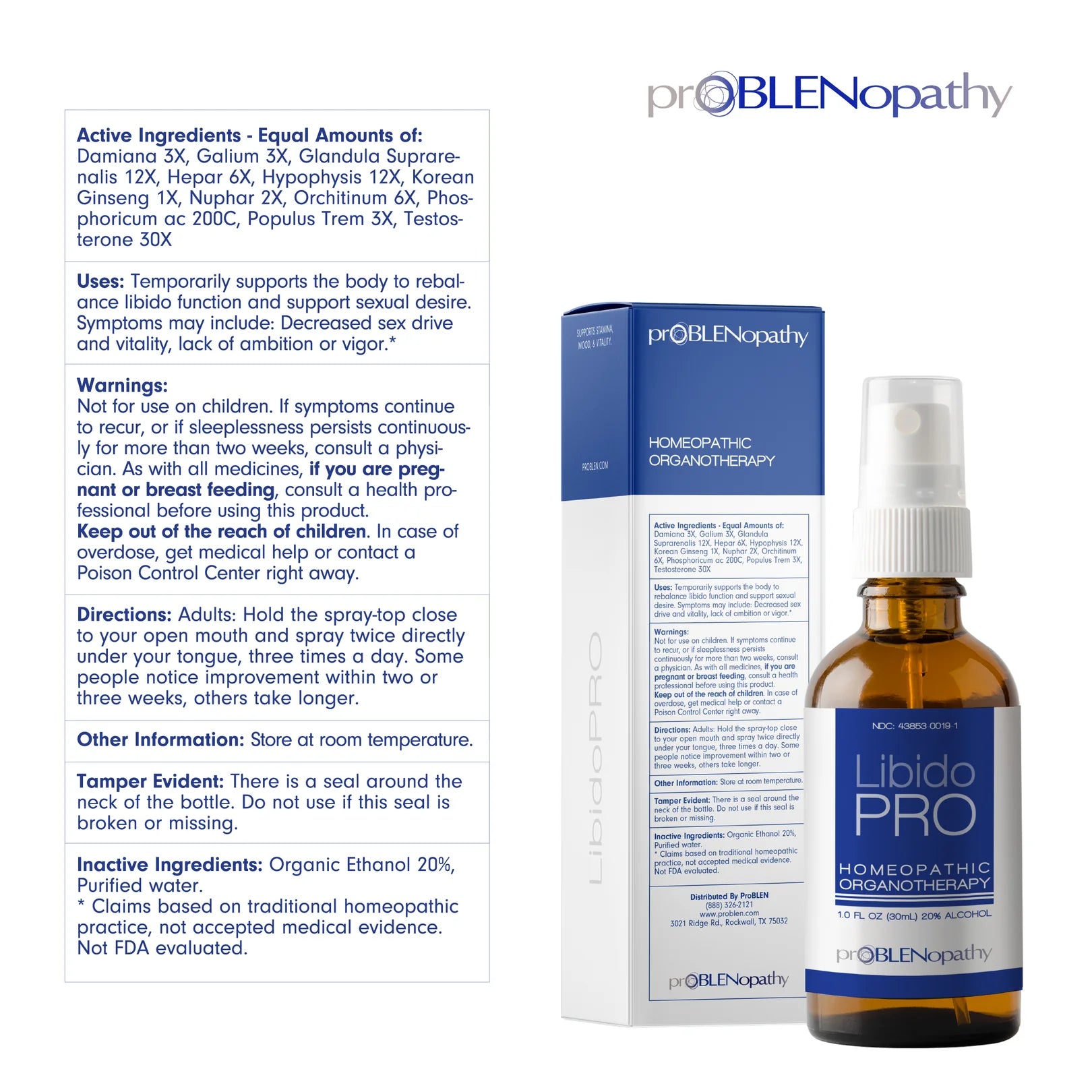 LibidoPRO by proBLENopathy is a homeopathic spray formulated to support sexual wellness and hormone balance in both men and women. This unique blend of botanical and glandular ingredients helps nourish the reproductive system, enhance libido, and support overall vitality. Whether you're looking to rekindle desire or maintain a healthy intimate connection, LibidoPRO offers gentle and effective support.