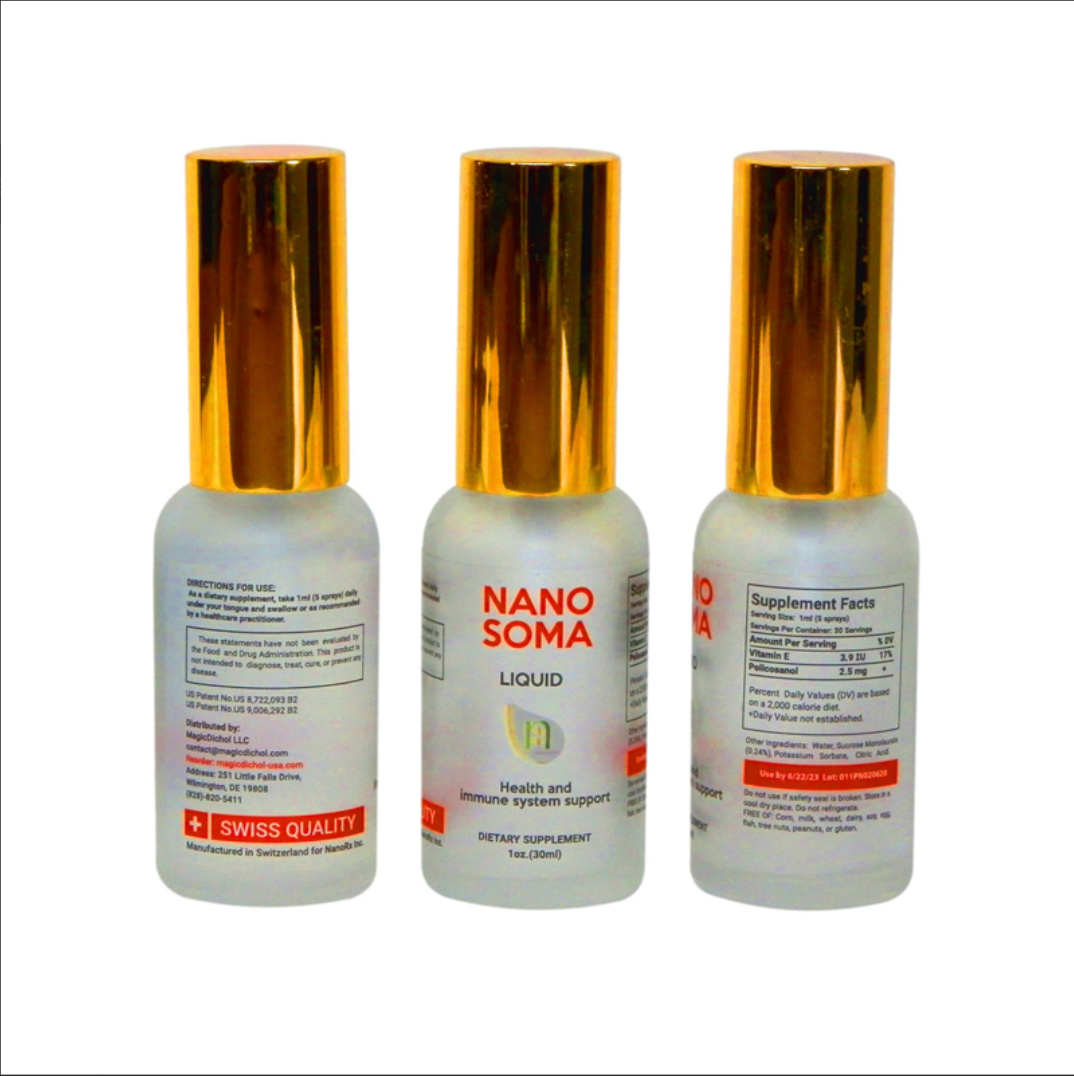 Nano Soma is a specific narrow spectrum subset of natural policosanols in ultra-pure water. This nano-emulsion of policosanol—a substance derived from naturally occurring plant waxes known as long-chain lipid alcohols is nano encapsulated to 60 nanometers.