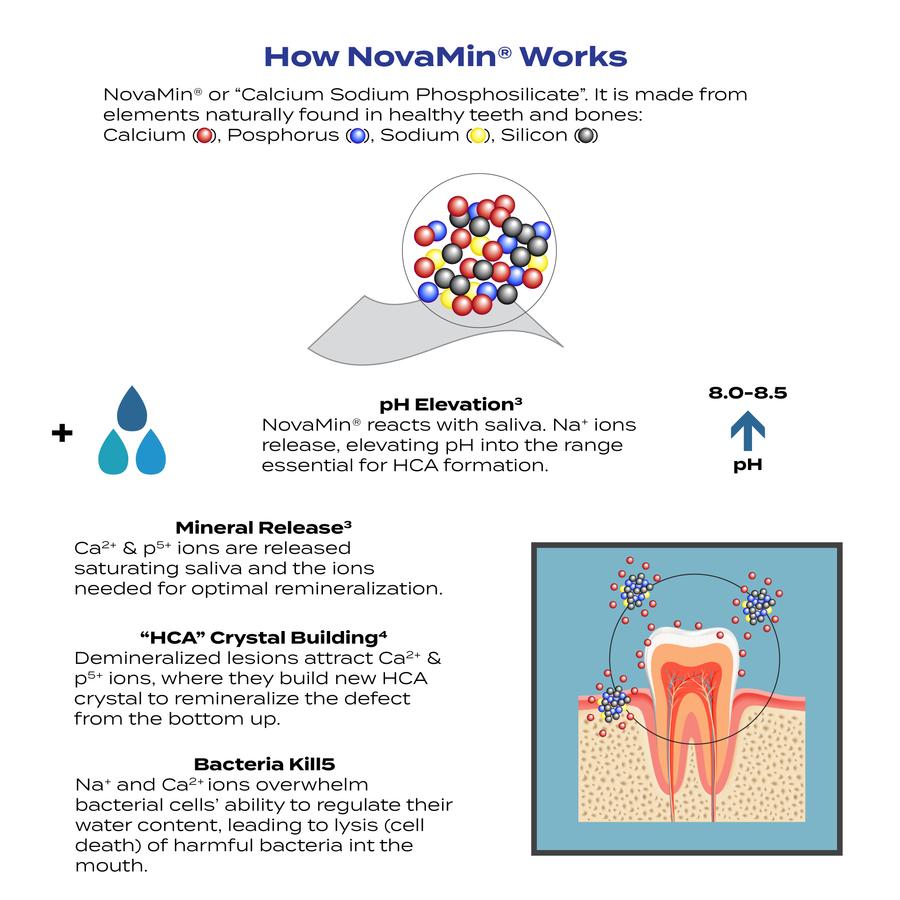 - Sodium Bicarbonate: Neutralizes plaque acids and aids enamel remineralization.