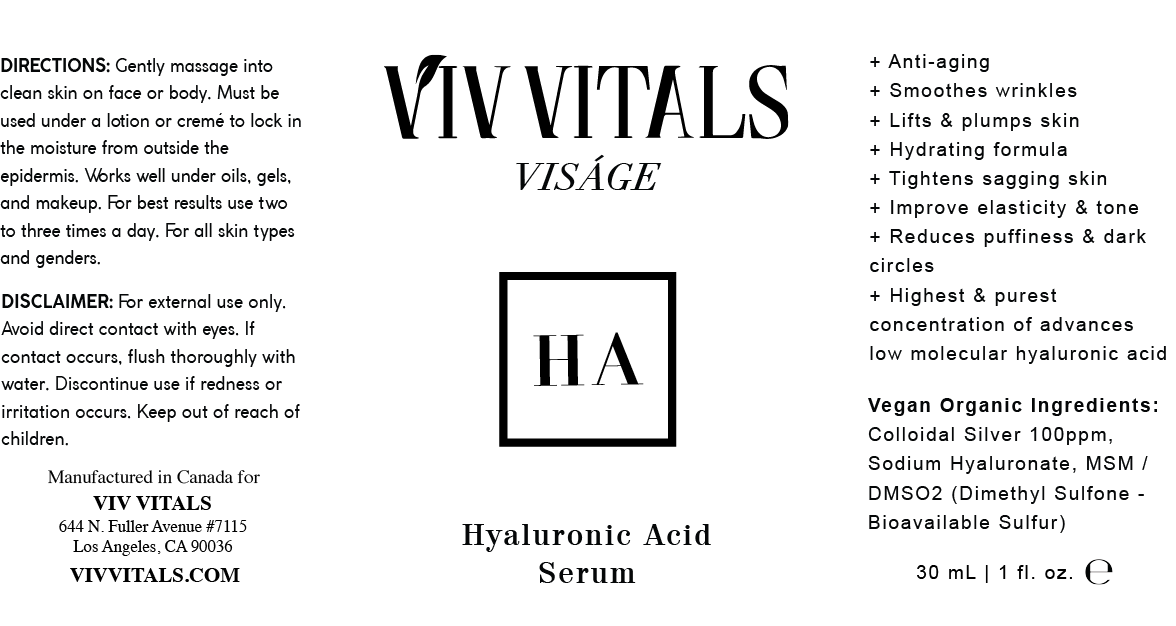 HA | Hyaluronic Acid Serum by Viv Vitals Visage Ingredients: Colloidal Silver 100ppm, Hyaluronate, MSM / DMSO2 (Dimethyl Sulfone - bioavailable sulfur)
